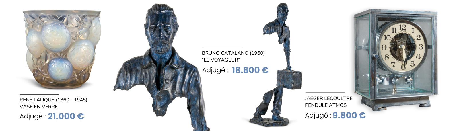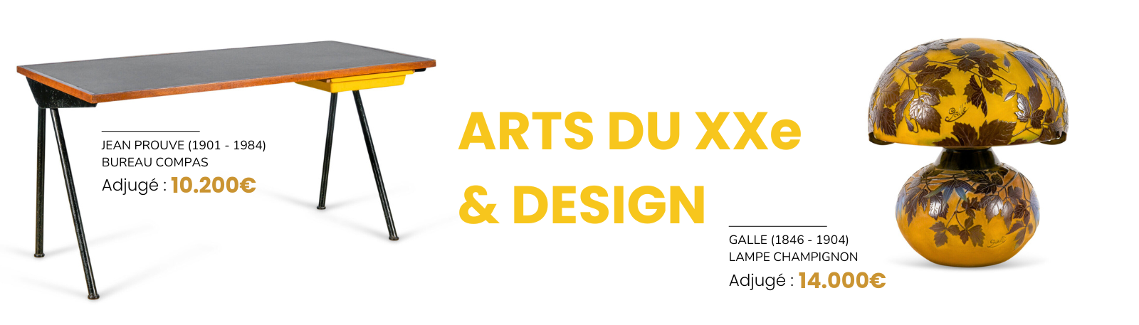 Présentant des meubles et objets Art Nouveau, Art Deco, Design ou contemporains, nos ventes d'Art du XXe attirent un public toujours plus nombreux. Assistés du cabinet PBG Expertise, nous garantissons l'authenticité de vos objets et leur assurons une visibilité internationale.